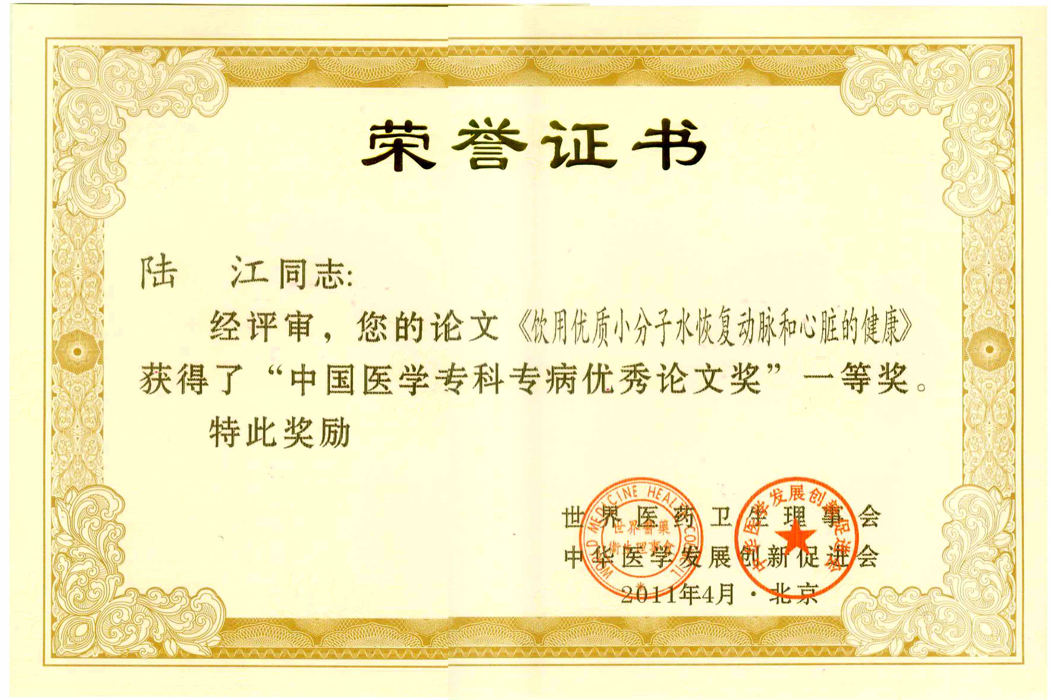 人類幾千年來患以上病癥需終生服藥,幾十年也不能治愈??墒俏覈蠈幍母呒壒こ處熽?nbsp;江,于1990年想根治高血壓,研究發(fā)明了離子水瓶,處理出微小分子團水供飲用,經(jīng)過醫(yī)院臨床試用和專家鑒定,1999年獲中國發(fā)明專利權(quán),產(chǎn)品于2000年投放市場后一直跟蹤調(diào)查,據(jù)全國各地用戶反饋:祛除了高低血壓、糖尿病和冠心病,并使前列腺增生、咽喉炎、鼻竇炎、慢性氣管炎、支氣管炎、矽肺病、哮喘、慢性胃炎、腸炎、慢性膽囊炎、慢性腎炎、腎衰、膀胱炎、便秘、痔瘡、風(fēng)濕性關(guān)節(jié)炎和濕疹皮炎及中風(fēng)后遺癥等病癥不藥而愈。為什么喝微小水能治20多種病?陸 江從1991年德國科學(xué)家發(fā)現(xiàn)細胞膜水通道僅為2納米獲得啟發(fā),認為多種器官患病是因細胞脫水,不能正常代謝和分裂增殖,才使器官細胞減少致衰弱萎縮而形成細胞缺水性病癥。22年來的實踐有力地支持了“細胞脫水致病”這一重要論點,表明喝微小水可滿足細胞的生理需求,補水就能祛病,是生命科學(xué)新亮點。