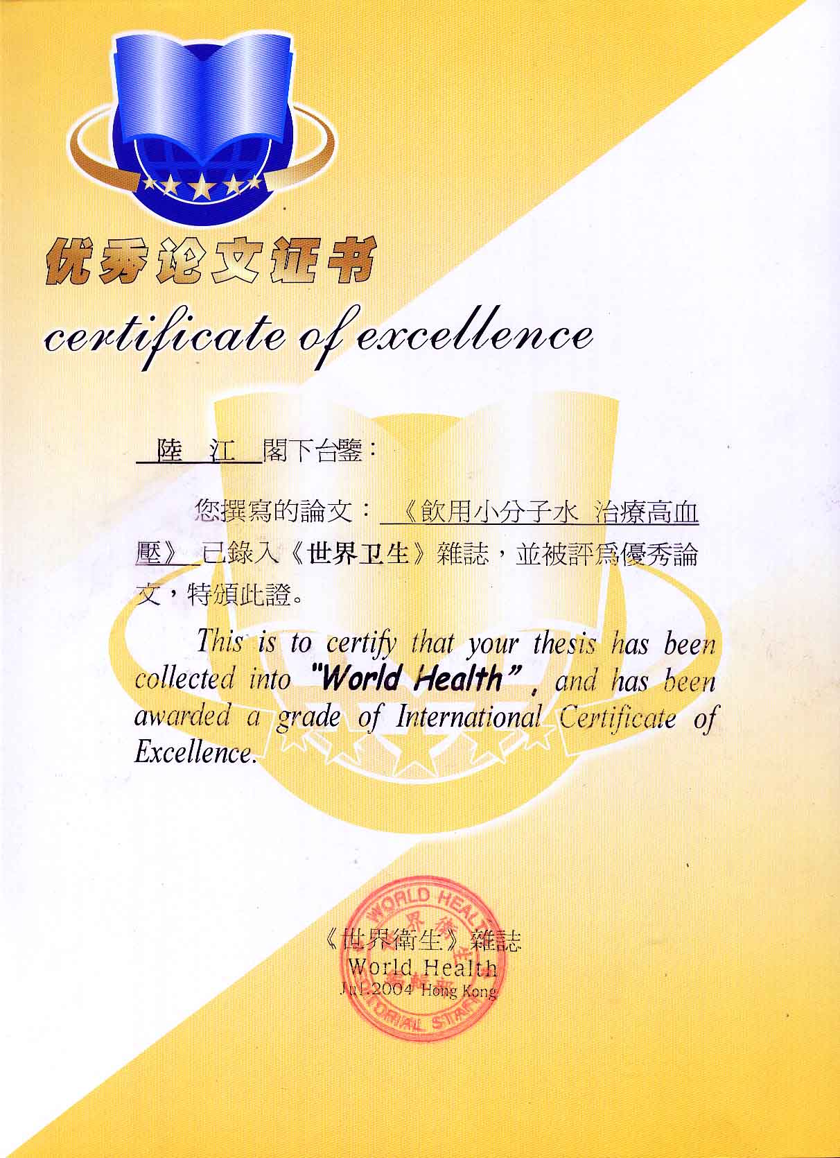 一、創(chuàng)造了在家在職場使用方便的微小分子團水器具。在世界上首先用此理療方法,大規(guī)模地成功地逆轉(zhuǎn)和消除動脈粥樣硬化,確實祛俆高血壓和冠心病與糖尿病,使患者恢復(fù)動脈和心臟及胰島的健康,可消除因細胞缺水使器官衰弱而形成多種器官的缺水性病癥,并使健康人可預(yù)防和減緩動脈粥樣硬化,減少心腦血管病,具有重大的社會經(jīng)濟和戰(zhàn)略意義。