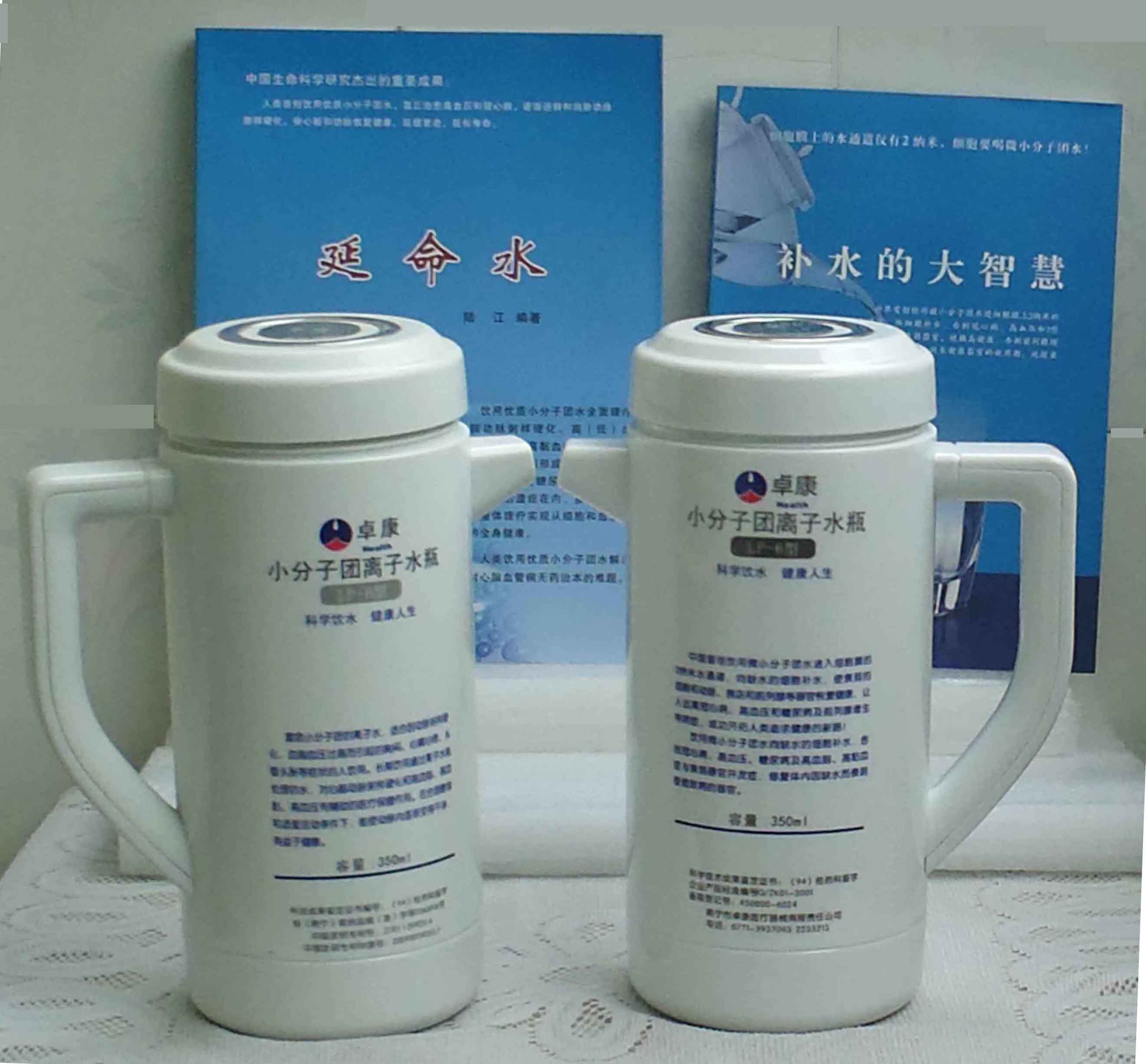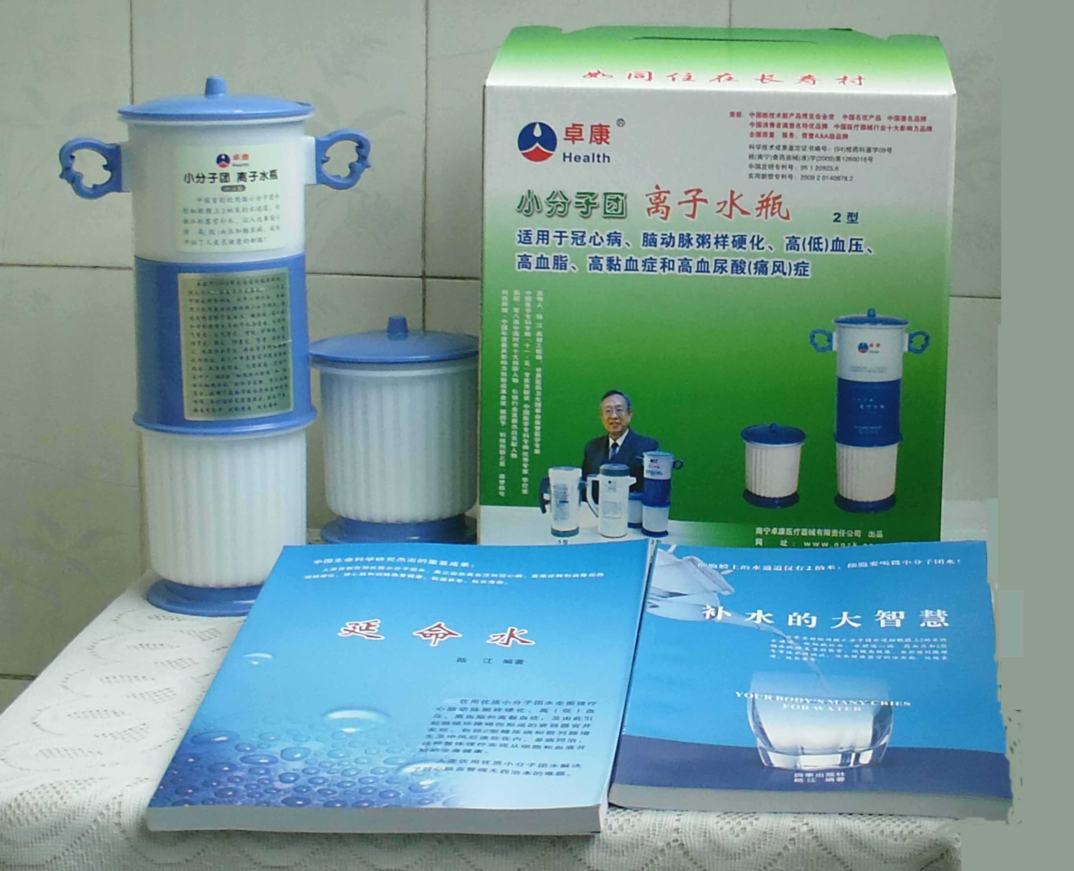 本品大量用戶的使用效果表明,能治愈冠心病、腦動脈硬化、原發(fā)性高(低)血壓、高血脂、高粘血癥、高血尿酸癥(痛風(fēng))和2型糖尿病、衰弱器官并發(fā)癥(前列腺增生、腎衰與尿毒癥)及中風(fēng)后遺癥等療效好。產(chǎn)品配信譽卡。使用壽命30年,不換芯,易清洗。團購優(yōu)惠。從郵局匯款,匯費1%,地址按本頁下方地址、聯(lián)系人寫。從銀行匯款,請點擊[聯(lián)系匯款]欄,從工商銀行匯款,建設(shè)銀行、農(nóng)業(yè)銀行匯款,均免收匯費,匯款后20--30分鐘內(nèi)發(fā)短信,可用微信轉(zhuǎn)帳,均免匯費,微信號即手機號13768308380。匯款后,告知你的姓名和地址,我公司聯(lián)系人手機號是:13768308380。卓康牌離子水瓶為我公司獨家生產(chǎn),郵購產(chǎn)品配《補水的大智慧》彩印書一本,另配四季出版社出版的新書《補水的大智慧》一本,并配光盤一張(含央視主持人釆訪陸江的對話視頻)。目前市場和"淘寶網(wǎng)"上有人兜售假冒的偽品,望讀者審察辯別真?zhèn)?,造假者剽竊假冒本公司的各種認證、獲獎獎項、專利號和外包裝盒上的中英文字,包括科技成果的鑒定意見等,請讀者注意防偽。如何識別假貨?已經(jīng)買了假貨怎么辦?(請點擊[打假掠影][打假掠影])。