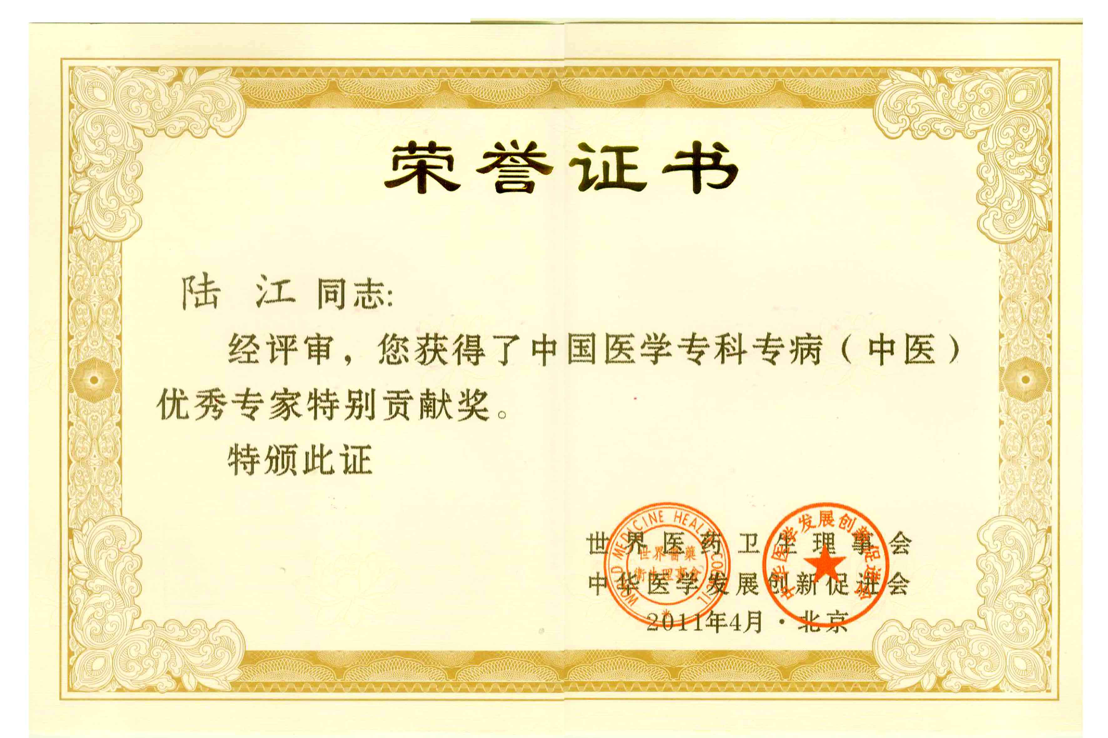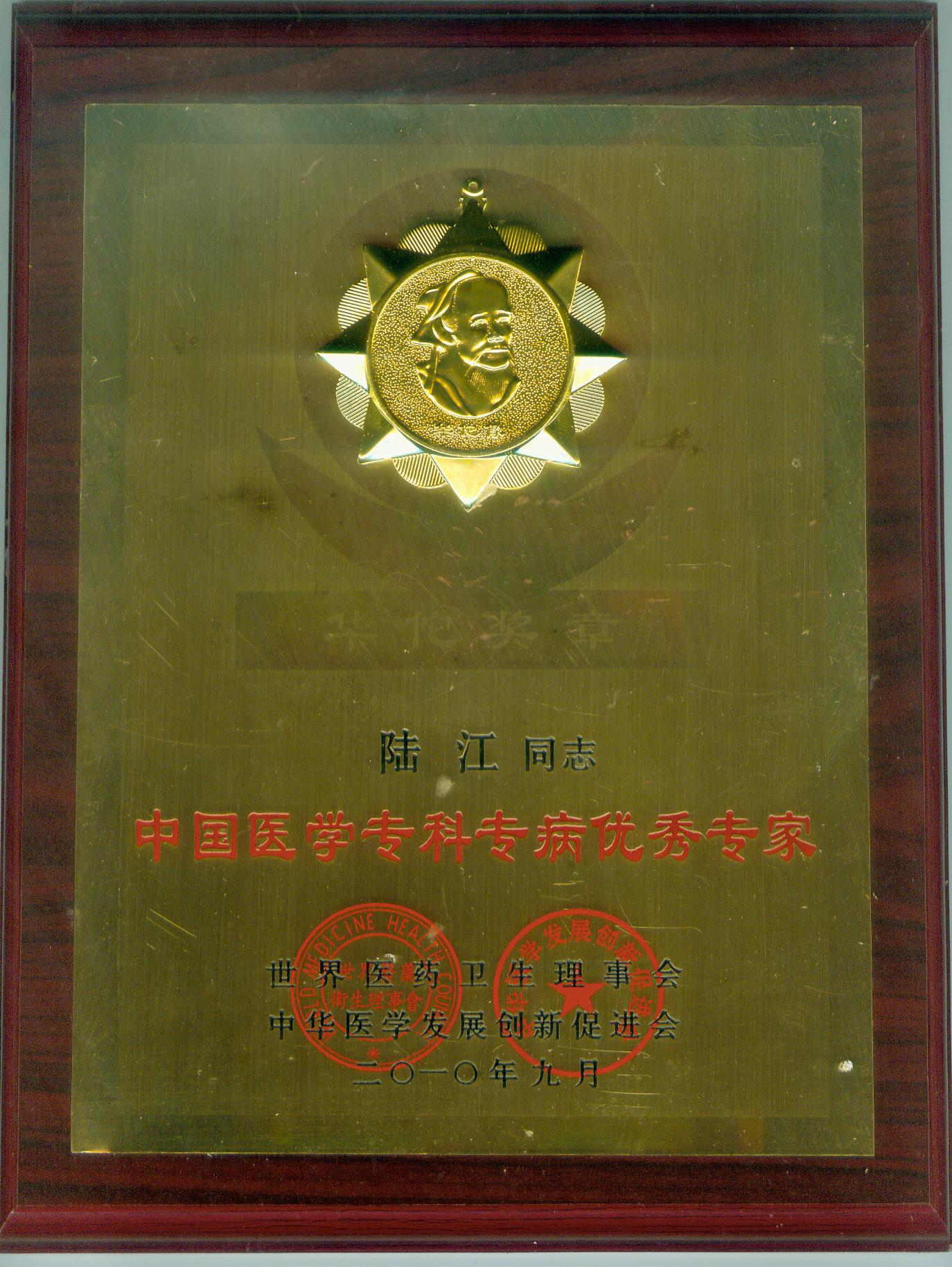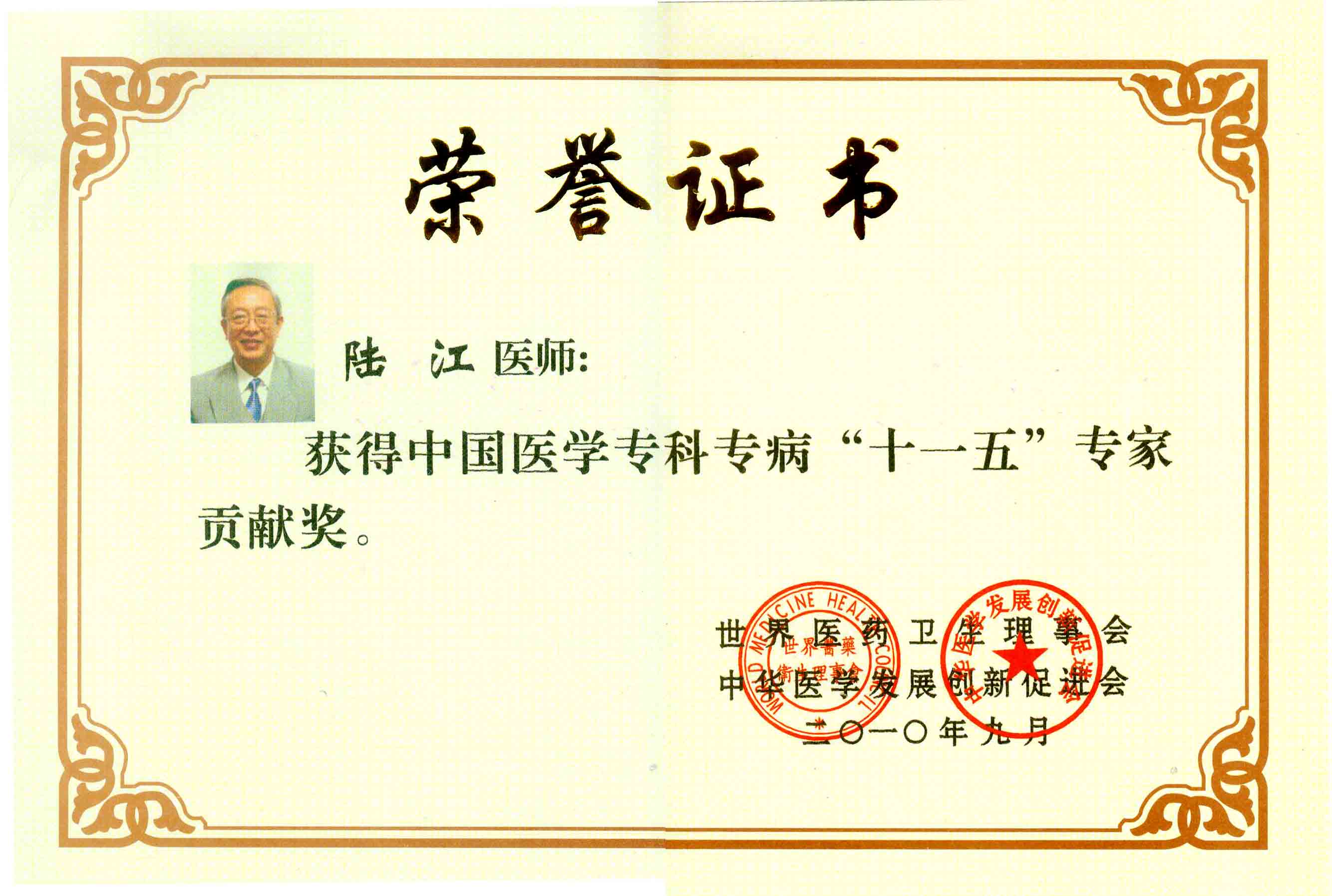 陸江獲得中國醫(yī)學(xué)??茖2?yōu)秀專家恃別貢獻獎